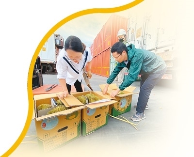 “針對水果等生鮮農產品特點,我們采取7×24小時預約通關,設置農食產品專用窗口,優(yōu)先辦理鮮活易腐農產品接單、放行業(yè)務,并采取即到即檢即放模式,確保進口水果通關零延遲。”勐臘海關關長韓斌說。