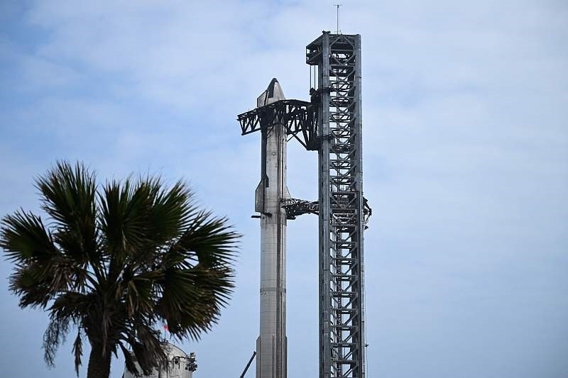△當(dāng)?shù)貢r間4月19日,準(zhǔn)備進行首次軌道試飛的“星艦”。