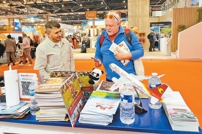 記者看到,中國(guó)展區(qū)以國(guó)寶大熊貓為主推形象,融合中國(guó)紅、祥云紋、竹子等特色元素,展示了中國(guó)旅游的獨(dú)特魅力。在3天的活動(dòng)中,中國(guó)展區(qū)重點(diǎn)推介了“你好!中國(guó)”赴華旅游線路,以及京粹文化、“中國(guó)入境旅游第一站”上海、“古絲綢之路起點(diǎn)”陜西、“千湖之省”湖北等旅游產(chǎn)品。