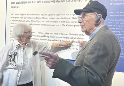 走進(jìn)博物館,代表團(tuán)成員在一張張老照片、一件件珍貴實(shí)物前流連,認(rèn)真聆聽講解,還不時(shí)與身邊親友交談。麥克馬倫在展板上看到自己的名字后,興奮地向妻子珍妮弗指了指名字的位置。他曾擔(dān)任B—24轟炸機(jī)機(jī)頭炮手和助理飛行機(jī)械師,在昆明和成都參加對(duì)日作戰(zhàn)??粗AЧ窭锏恼蛊?,他感慨:“美中兩國(guó)人民的友誼將延綿不斷?!?/p>