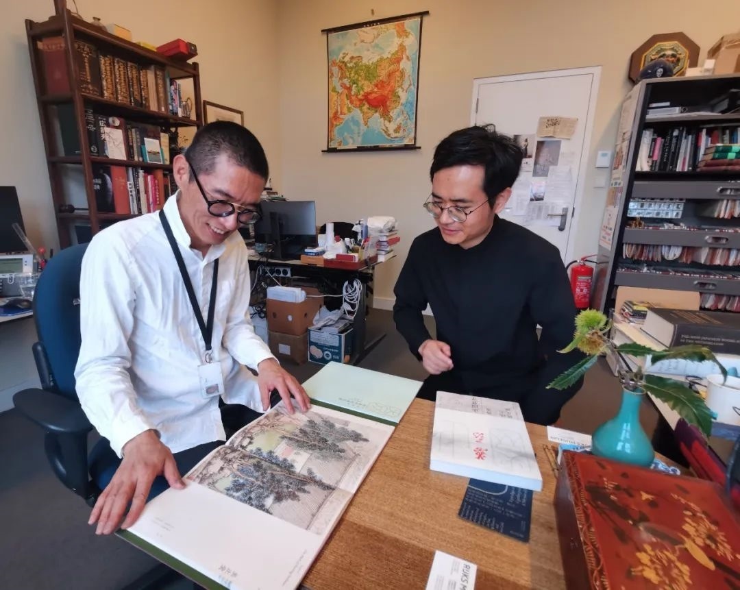 2023年9月,黃曉(右)與荷蘭國(guó)家博物館王靜靈研究員(左)交流,后者曾策劃2013年柏林的止園圖展。