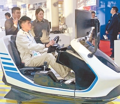 工作人員在展示遠(yuǎn)程駕駛平臺。本報(bào)記者 施 芳攝