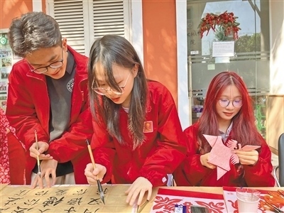 12月8日,在河內(nèi)大學(xué)孔子學(xué)院舉行的文化體驗(yàn)活動(dòng)中,越南大學(xué)生體驗(yàn)中國(guó)書(shū)法和剪紙。本報(bào)記者 張遠(yuǎn)南攝