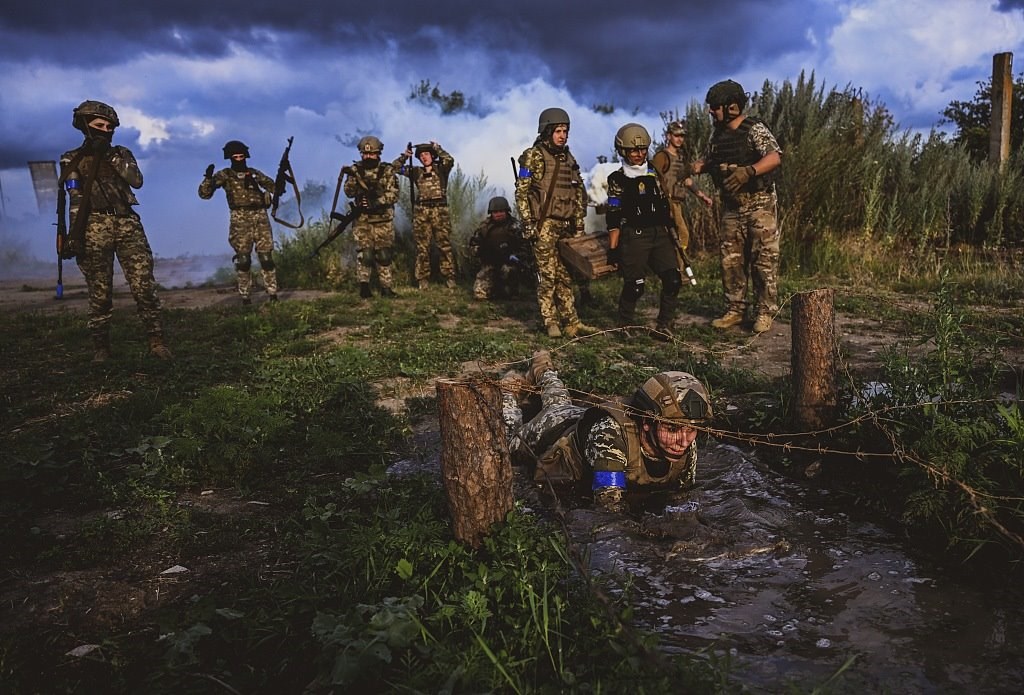 當(dāng)?shù)貢r間2023年7月15日,扎波羅熱地區(qū),烏克蘭女兵在不同的戰(zhàn)斗場景中進(jìn)行訓(xùn)練。