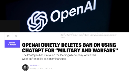 “在人工智能系統(tǒng)正被用于針對(duì)加沙地區(qū)的平民時(shí),OpenAI決定將禁止軍事和戰(zhàn)爭(zhēng)用途文字從其使用條款中移除,是值得關(guān)注的”,一位專家對(duì)“攔截者”網(wǎng)站這樣說(shuō)道。