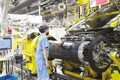 通用橡膠(泰國)有限公司年產(chǎn)各類輪胎共計730萬套。圖為泰籍員工在汽車輪胎生產(chǎn)線上工作。本報記者 孫廣勇攝