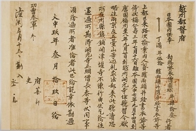 853年,圓珍入唐,先后在福州開元寺、天臺山國清寺、長安青龍寺等地修學(xué)。858年,圓珍攜大量經(jīng)卷、法器等回到日本,被尊為三井寺第一代住持,并成為日本天臺宗寺門派創(chuàng)始人。在唐求法期間,圓珍與各界人士結(jié)下深厚友誼。圓珍的親身經(jīng)歷以及他和唐朝人士的往來信件等,成為中日文化交流的歷史見證。