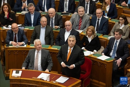 2月26日,匈牙利總理歐爾班(前右)在布達佩斯舉行的國會春季會議上致辭。新華社發(fā)(弗爾季·奧蒂洛攝)