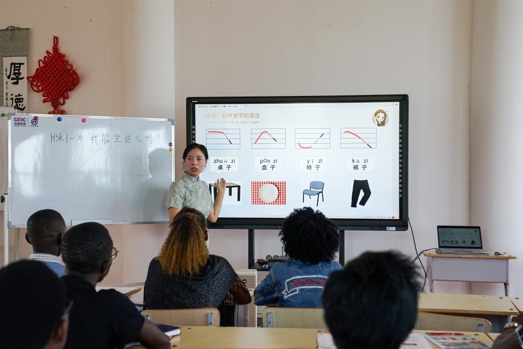 在安哥拉首都羅安達,內圖大學孔子學院教師正為學生們講授中文。