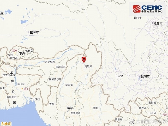 央視網(wǎng)消息:據(jù)@中國(guó)地震臺(tái)網(wǎng)速報(bào) 微博消息,中國(guó)地震臺(tái)網(wǎng)正式測(cè)定:04月05日20時(shí)45分在緬甸(北緯26.41度,東經(jīng)96.92度)發(fā)生5.6級(jí)地震,震源深度10千米。