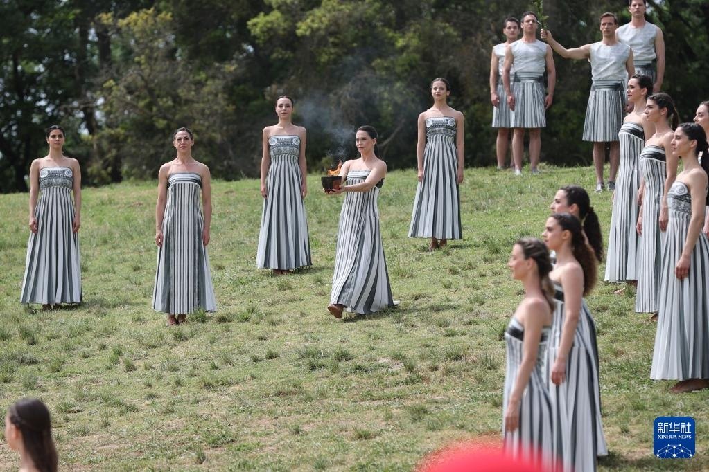 當(dāng)日,2024年巴黎奧運會圣火火種采集儀式在希臘伯羅奔尼撒半島的古奧林匹亞遺址舉行。