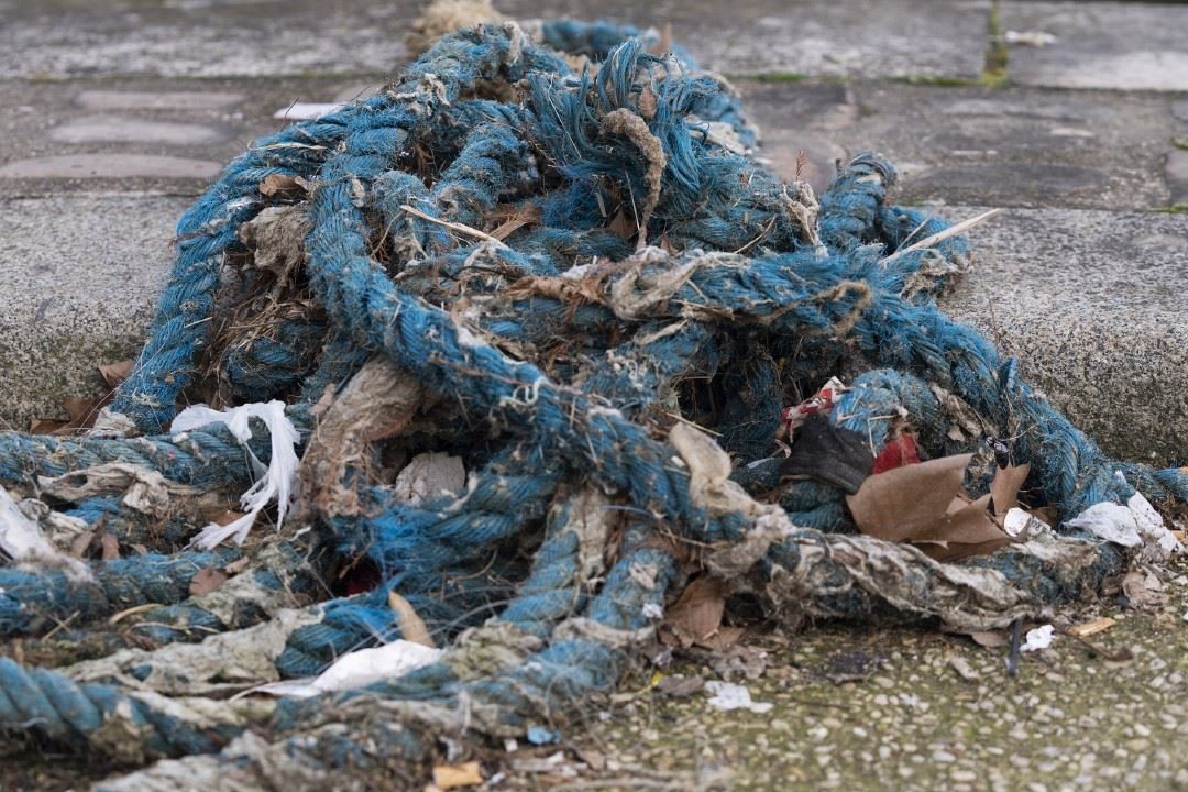 當(dāng)?shù)貢r(shí)間2024年2月14日,法國(guó)巴黎,塞納河岸邊被丟棄的繩子和垃圾。