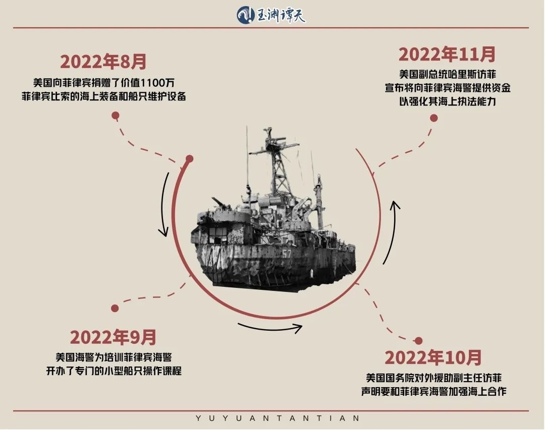 2023年2月6日,菲律賓海警開始炒作所謂的“中國海警在仁愛礁用激光照射菲方船只”一事。