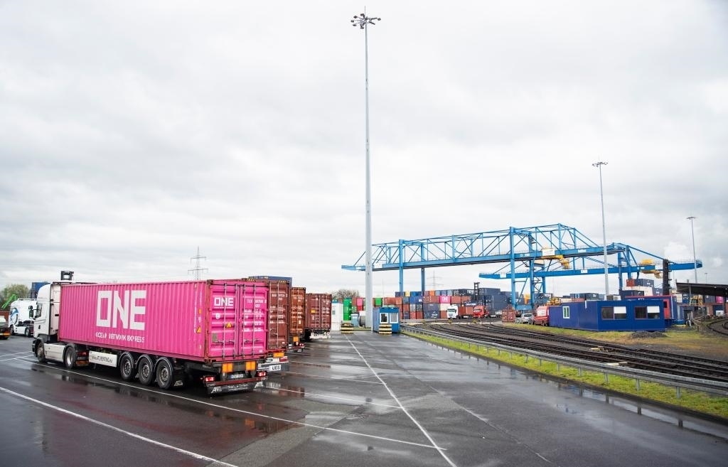 位于萊茵河西岸的杜伊斯堡港DIT貨運場站,是中歐班列的主要操作場站。目前,每周約有60列中歐班列抵達這里。數(shù)臺幾十米高的起重機和各類裝卸設(shè)備緊密配合作業(yè),將卸下的集裝箱碼放整齊,形成一座座連綿不絕的“小山”。隨后,這些跋涉萬里、種類豐富的中國貨品通過水路、鐵路或公路運輸,送往周邊城市和其他歐洲國家。