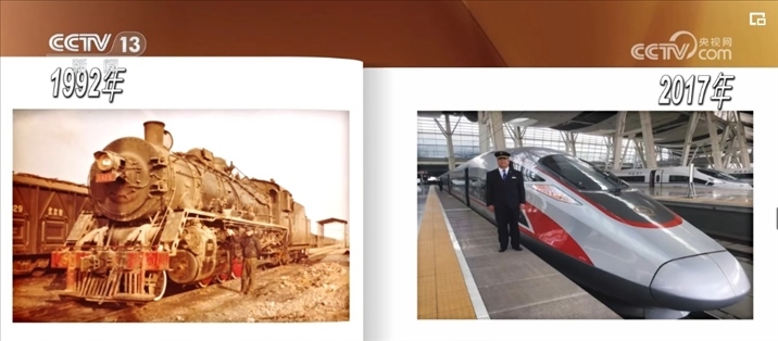 這張稍顯模糊的老照片是1992年,韓軍甲剛參加工作時(shí)拍下的。他身邊的蒸汽機(jī)車(chē)當(dāng)時(shí)的運(yùn)行時(shí)速一般只能開(kāi)到50公里左右,這個(gè)風(fēng)華正茂的年輕人從未設(shè)想過(guò),20多年后的2017年,他能駕駛時(shí)速350公里的復(fù)興號(hào)列車(chē)。