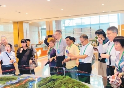 本次論壇還組織與會嘉賓前往浙江省安吉縣余村實(shí)地參觀考察。圖為中外嘉賓在余村了解當(dāng)?shù)貜摹翱可匠陨健钡健案簧金B(yǎng)山”的綠色發(fā)展之路。本報記者 孫亞慧攝