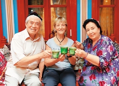 9月8日是維娜從家鄉(xiāng)意大利威尼斯出發(fā)的第846天。當(dāng)天,在新疆烏魯木齊市亞歐風(fēng)情街上的高加索餐廳,維娜度過了自己的75歲生日。熱情洋溢的新疆歌舞、琳瑯滿目的美食佳肴、真摯友愛的生日祝?!瓌e開生面的生日慶?;顒幼尵S娜深受感染。身披新疆特色的絲綢圍巾,她被載歌載舞的維吾爾族姑娘簇?fù)碇?,在手風(fēng)琴聲中翩翩起舞。很難想象,舞池中滿面春風(fēng)的她,曾獨(dú)自穿梭于中亞廣袤無垠的沙漠綠洲,也一人攀越過帕米爾高原的崇山峻嶺。