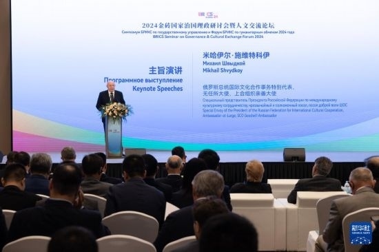 新華社莫斯科9月23日電(記者江宥林 劉愷)當(dāng)?shù)貢r間23日,2024金磚國家治國理政研討會暨人文交流論壇在俄羅斯首都莫斯科舉行。來自中國、俄羅斯、印度、巴西、南非、埃及、伊朗、阿聯(lián)酋等金磚國家和金磚國家新開發(fā)銀行等的120余名代表圍繞“金磚國家的現(xiàn)代化之路”主題展開研討交流。