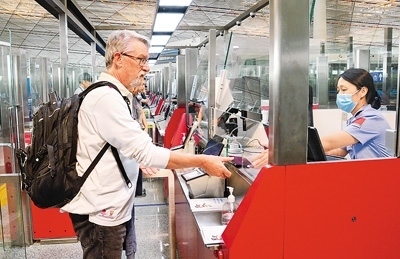為了能讓外國旅客在入境第一站就體驗到在中國旅游的便利,一系列免簽政策配套措施不斷創(chuàng)新完善——縮短候檢查驗時間、自助填寫申報表、組建多語種志愿服務(wù)隊……各口岸邊檢部門傾力為出入境旅客提供優(yōu)質(zhì)、高效的通關(guān)服務(wù)。國際航線較多、外籍人員入境量較大的口岸均已開展口岸簽證業(yè)務(wù)。今年上半年,全國移民管理機構(gòu)簽發(fā)口岸簽證68.6萬證次,同比上升267.9%。