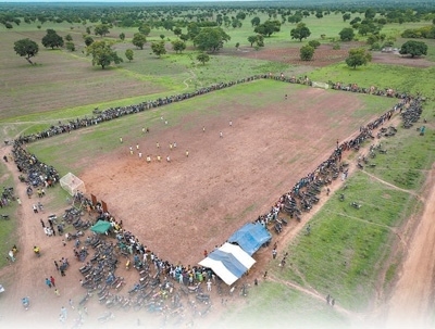 由中國援貝寧棉花技術(shù)援助項(xiàng)目組修建的足球場(無人機(jī)照片)。新華社記者 李亞輝攝