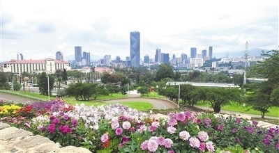 從友誼廣場(chǎng)眺望亞的斯亞貝巴天際線。 本報(bào)記者 萬(wàn) 宇攝