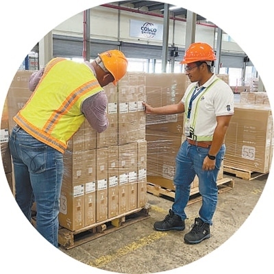 “海運(yùn)+海外倉”是中遠(yuǎn)海運(yùn)探索出的“一站式”全程綜合物流服務(wù)模式,集海運(yùn)、倉儲、報關(guān)等服務(wù)于一體。圖為在巴拿馬科隆自由貿(mào)易區(qū)內(nèi)的中遠(yuǎn)海運(yùn)海外倉,工作人員對抵達(dá)的貨物進(jìn)行質(zhì)檢??逅埂ぐ嗟夏釘z