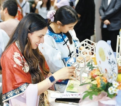 聯(lián)合采訪團成員在谷雨公司體驗中華傳統(tǒng)文化。本報記者 蔣雨師攝