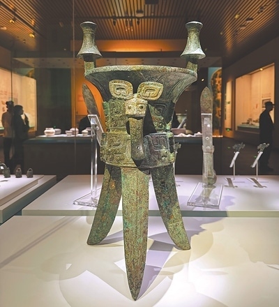 殷墟位于河南安陽市西北郊,是中國第一個有文獻記載并經甲骨文及考古發(fā)掘所證實的商代晚期都城遺址,也是世界青銅文明的重要代表。殷墟博物館與殷墟宗廟宮殿區(qū)隔河相望,是全景式展現(xiàn)商文明的國家重大考古專題博物館。圖為殷墟博物館里展出的殷墟婦好墓出土的銅斝。人民網(wǎng)俄文專家 葉列娜·達維多娃攝 殷墟博物館是一座歷史文化的寶庫。在這里,我近距離地觀察一件件青銅器,仿佛看到其上閃爍著的中國古人智慧的火花;我端詳一片片的甲骨,試圖解讀那些古老的文字,仿佛在與中國古人跨越時空對話。在這里,我看到了考古學家如何不遺余力地保護歷史,也觀察到年輕的甲骨文愛好者們不斷用新鮮創(chuàng)意為文物保護注入新的生命力,這份傳承讓我深受觸動。