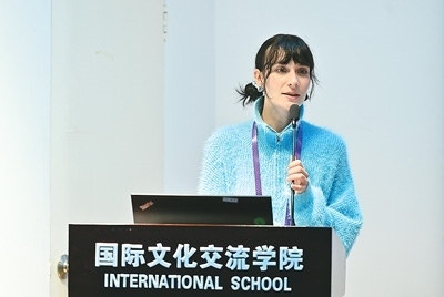 在法國(guó)學(xué)生安蕊的眼中,中國(guó)是一個(gè)充滿多樣性和豐富文化的國(guó)家。圖為她在比賽現(xiàn)場(chǎng)演講。