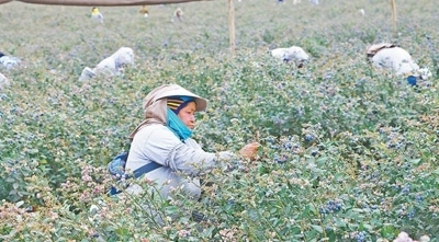 秘魯特魯希略市一家農(nóng)場內(nèi),工人們在采摘藍莓。本報記者 顏 歡攝