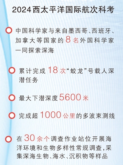 2024西太平洋國(guó)際航次科考由自然資源部中國(guó)大洋事務(wù)管理局統(tǒng)籌國(guó)家深?;毓芾碇行慕M織實(shí)施,是“數(shù)字化深海典型生境”大科學(xué)計(jì)劃下,首個(gè)在公海區(qū)域開展的聯(lián)合科考,也是首次有外國(guó)科學(xué)家搭乘“蛟龍”號(hào)開展深海科考。