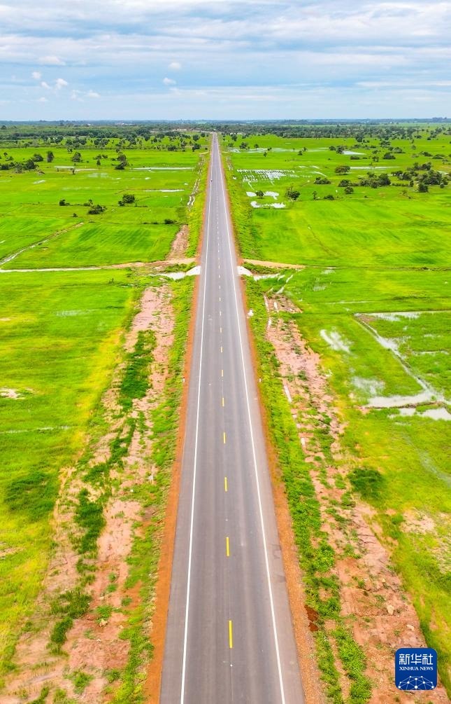 這是2024年7月14日在柬埔寨特本克蒙省拍攝的71C號(hào)國(guó)家公路(無人機(jī)照片)。新華社發(fā)(尼多拉攝)