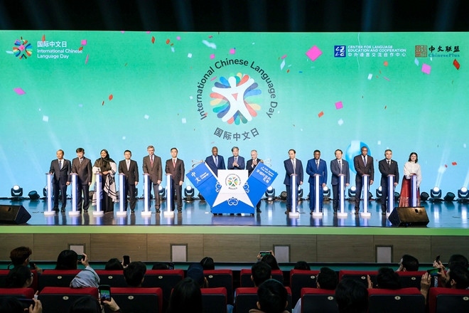 “滴答,滴答,下雨了,下雨了?!痹谟《饶嵛鱽喼凶ν凼∑蘸碳佣嗍衅杖A三語學校的一堂中文課上,二年級學生正跟著老師齊聲朗讀,稚嫩的聲音中透著認真。