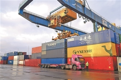 中歐班列重要樞紐——德國杜伊斯堡貨運場站內(nèi)來自中國的集裝箱。