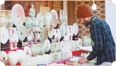 巴基斯坦客商在雅礱物交會(huì)布置展臺(tái)。