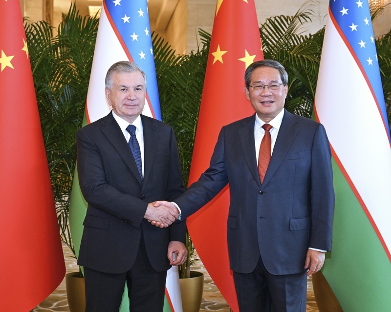 9月2日上午,國(guó)務(wù)院總理李強(qiáng)在北京釣魚(yú)臺(tái)國(guó)賓館會(huì)見(jiàn)來(lái)華出席2025年上海合作組織峰會(huì)和紀(jì)念中國(guó)人民抗日戰(zhàn)爭(zhēng)暨世界反法西斯戰(zhàn)爭(zhēng)勝利80周年活動(dòng)的烏茲別克斯坦總統(tǒng)米爾濟(jì)約耶夫。