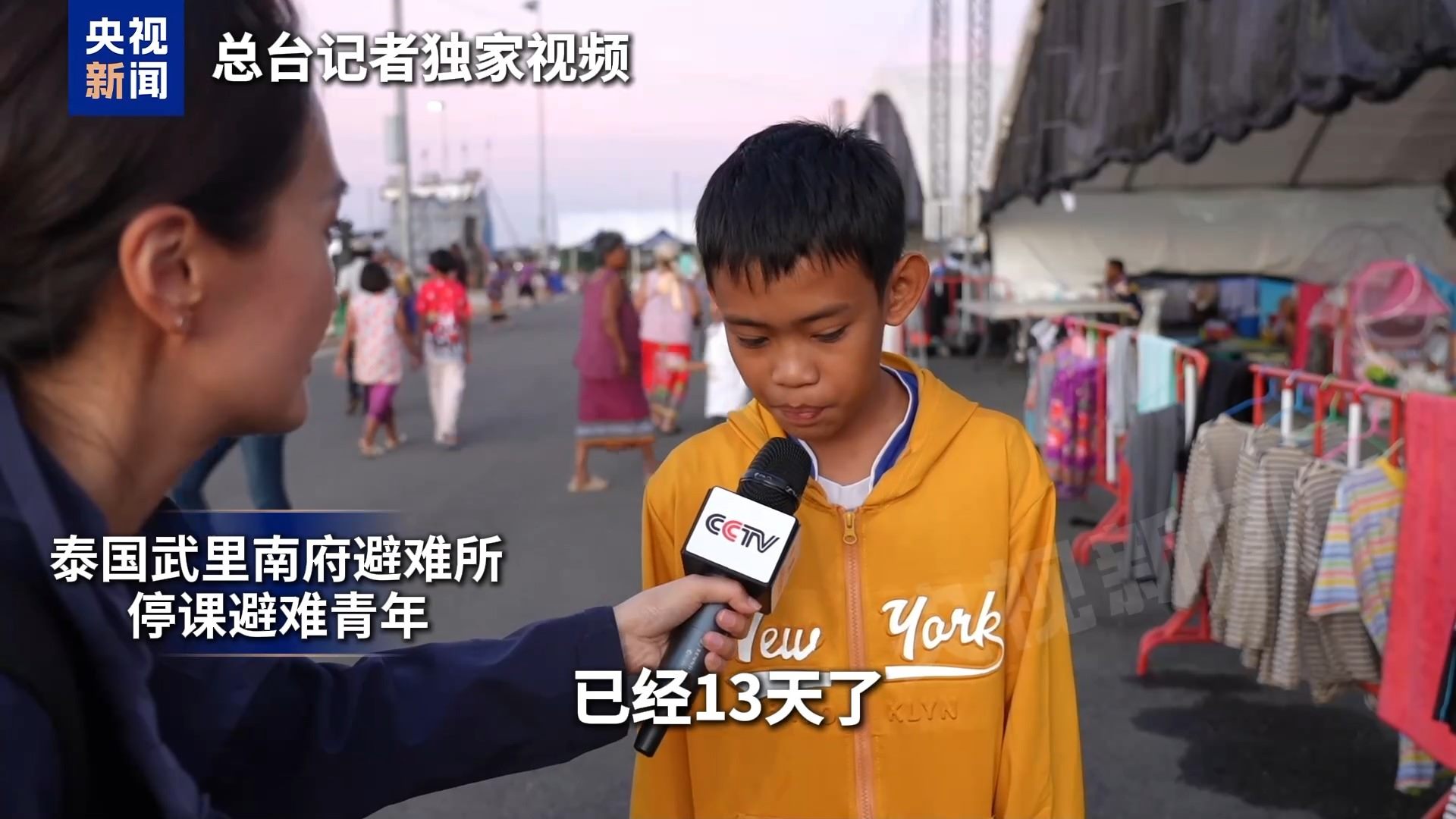 泰國武里南府避難青少年:已經(jīng)13天了,我在家里面聽到槍炮的聲音,非常害怕,就搬到這里來了。我想回學校讀書,我想見學校的朋友們了。