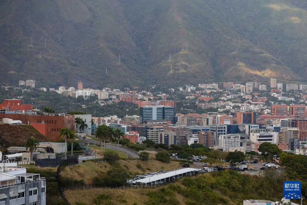 這是1月9日在委內(nèi)瑞拉首都加拉加斯拍攝的美國駐委內(nèi)瑞拉大使館館舍(畫面左側(cè))。新華社發(fā)