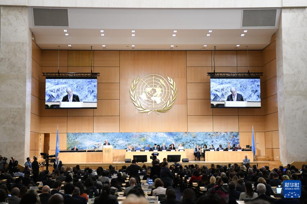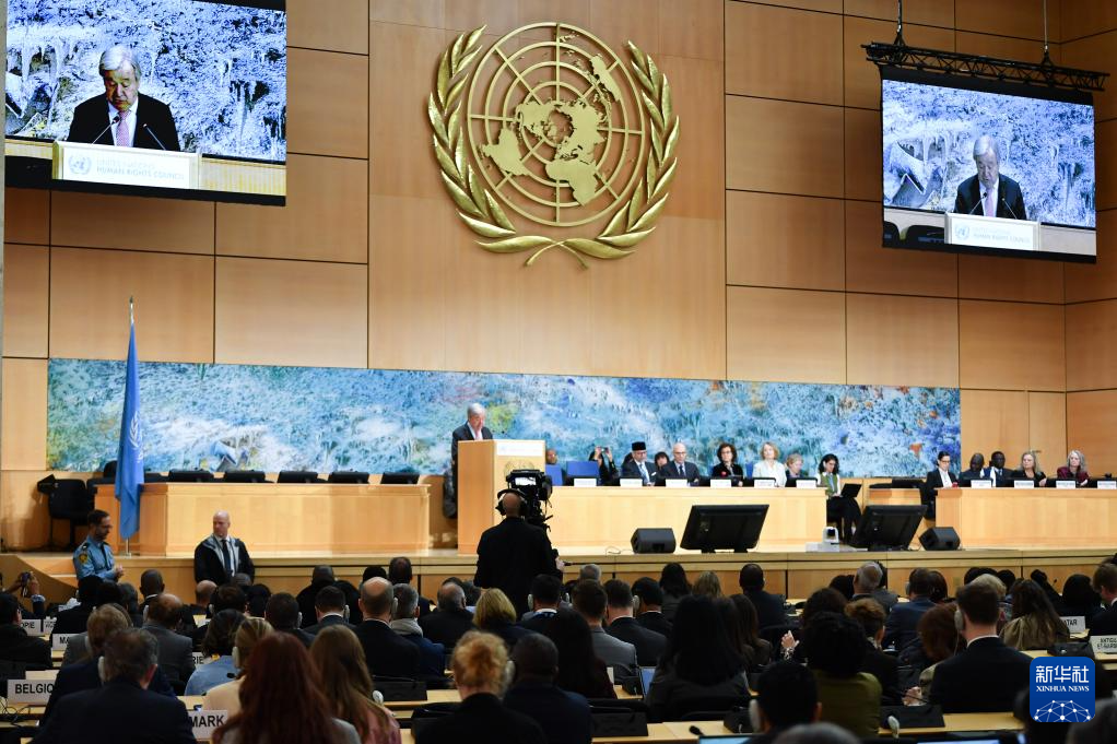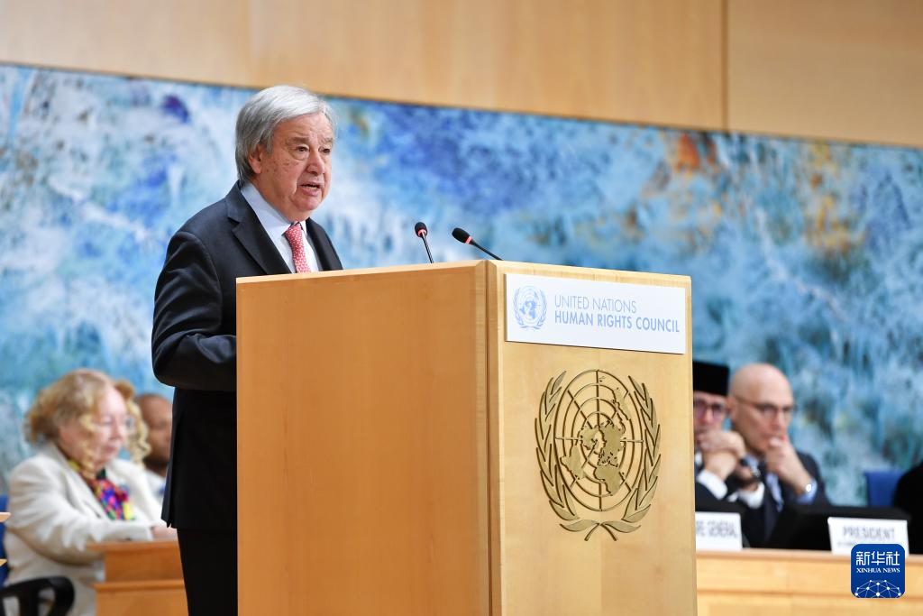 2月23日,在瑞士日內(nèi)瓦萬國宮,聯(lián)合國秘書長古特雷斯在聯(lián)合國人權理事會第61屆會議上講話。 新華社記者 連漪 攝