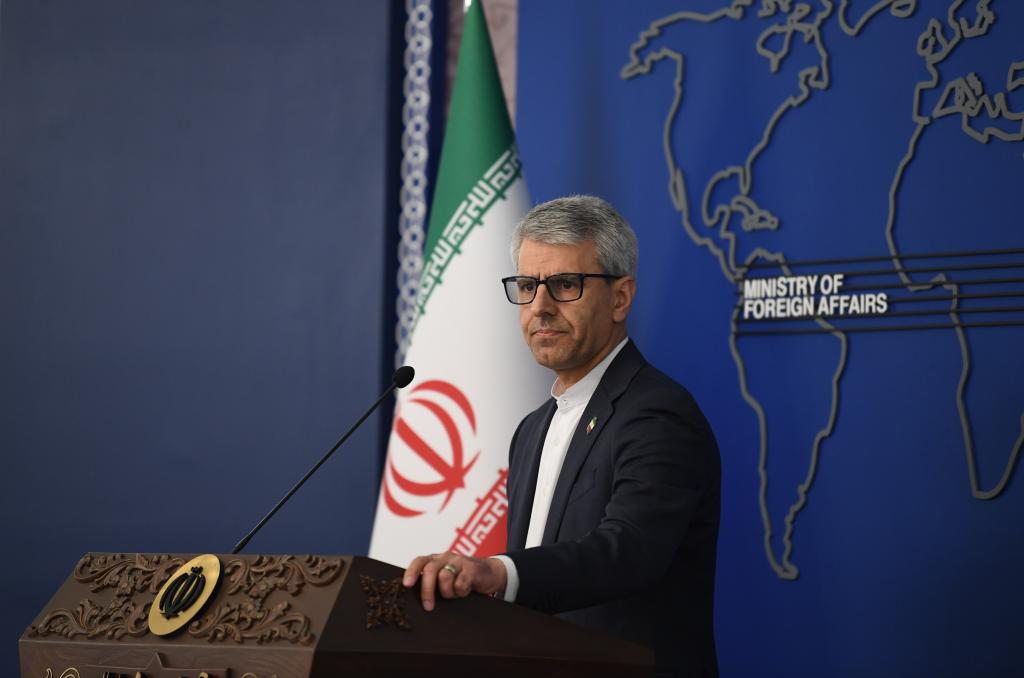 2026年2月23日,在伊朗首都德黑蘭,伊朗外交部發(fā)言人巴加埃出席每周例行記者會(huì)。新華社記者 沙達(dá)提 攝