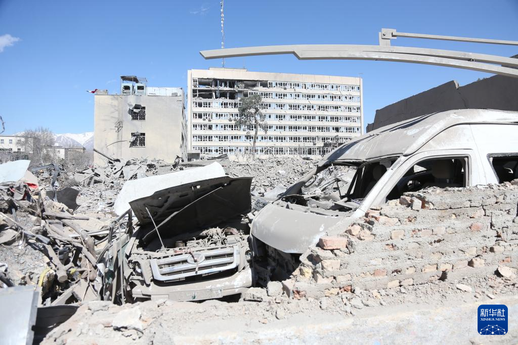 3月3日,人們走過伊朗德黑蘭一處在襲擊中受損的建筑。