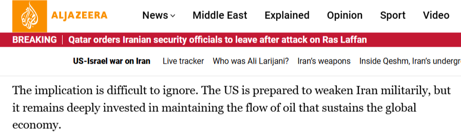 半島電視臺的報道稱,最近的事態(tài)發(fā)展表明,另一種更深層次、美國政府由來已久的“石油邏輯”正在發(fā)揮作用。美國的根本目的是控制資源,保障石油的流動性,這是全球資本主義經(jīng)濟的命脈。