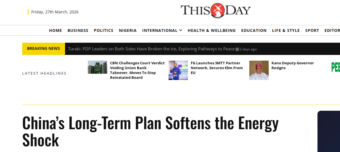 尼日利亞主流媒體《今日?qǐng)?bào)》報(bào)道截圖