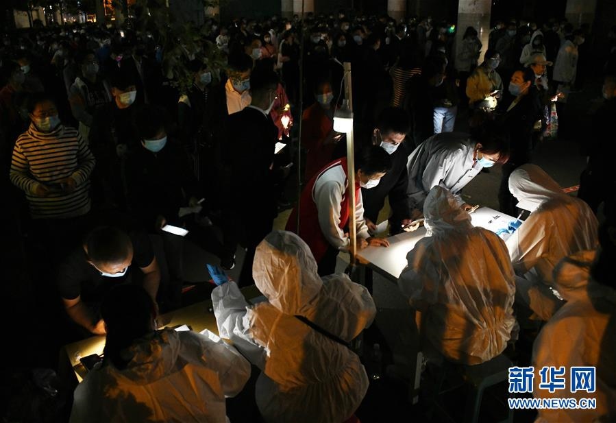 10月12日,市民在青島市市南區(qū)一檢測點進行免費核酸檢測。記者12日晚從青島市政府新聞辦召開的新聞發(fā)布會上獲悉,青島市已完成過百萬人的核酸檢測采樣,已出檢測結(jié)果31萬余份,未發(fā)現(xiàn)有新的陽性感染者。新華社記者李紫恒攝