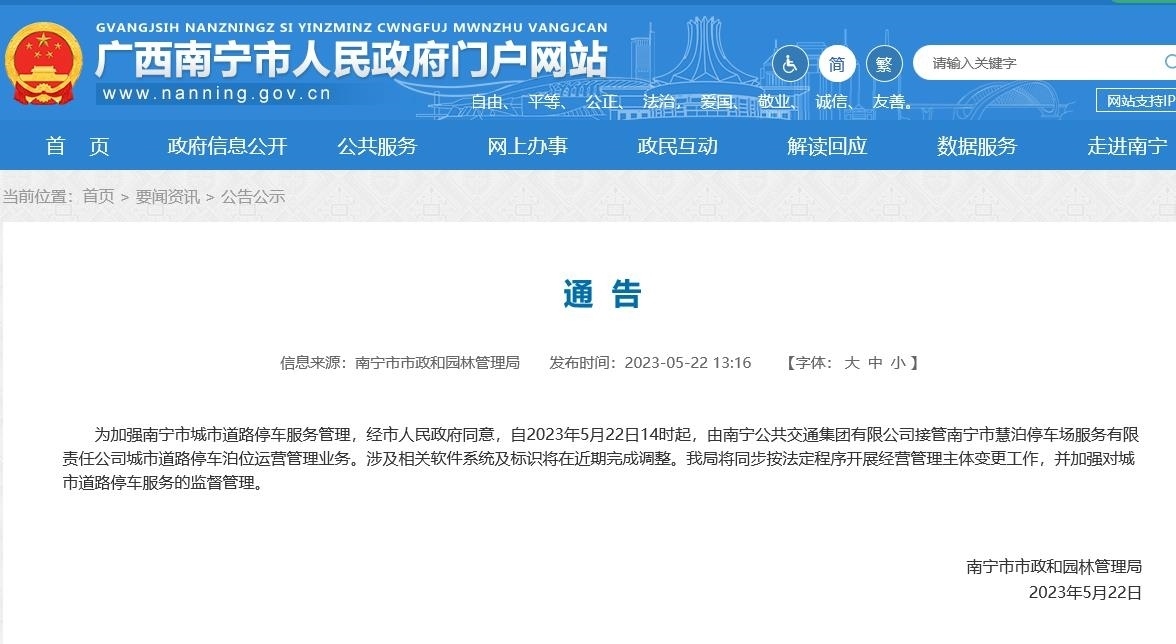 5月22日14時起 南寧公交集團接管慧泊停車運營管理業(yè)務 經市人民政府同意,自2023年5月22日14時起,由南寧公共交......