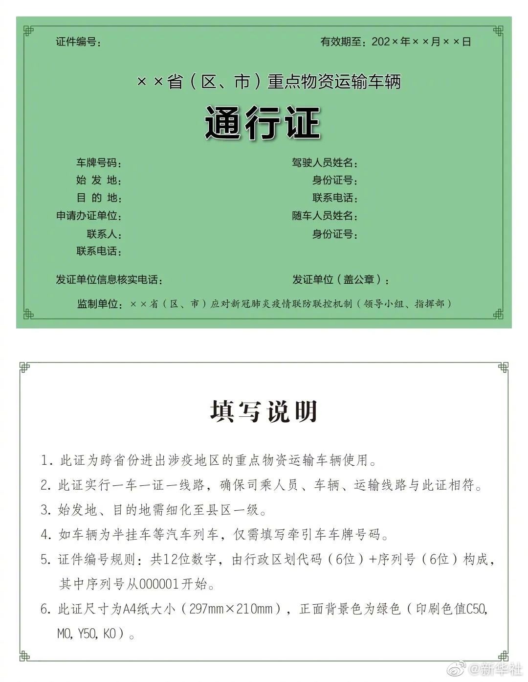全國統(tǒng)一式樣重點(diǎn)物資運(yùn)輸車輛通行證公布