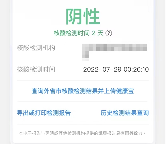 國務院聯(lián)防聯(lián)控機制發(fā)布的《關于進一步推動新冠病毒核酸檢測結果全國互認的通知》要求,各地高度重視核酸檢測結果全國互認的重要性,不同渠道展示的核酸檢測結果具有同等效力。群眾通過國務院客戶端、國家政務平臺、各省份健康碼,核酸檢測機構或App查詢到的核酸檢測結果及群眾持有的紙質核酸檢測結果,凡在有效時間內(nèi)具有同等效力,各地在查驗時都應當予以認可。