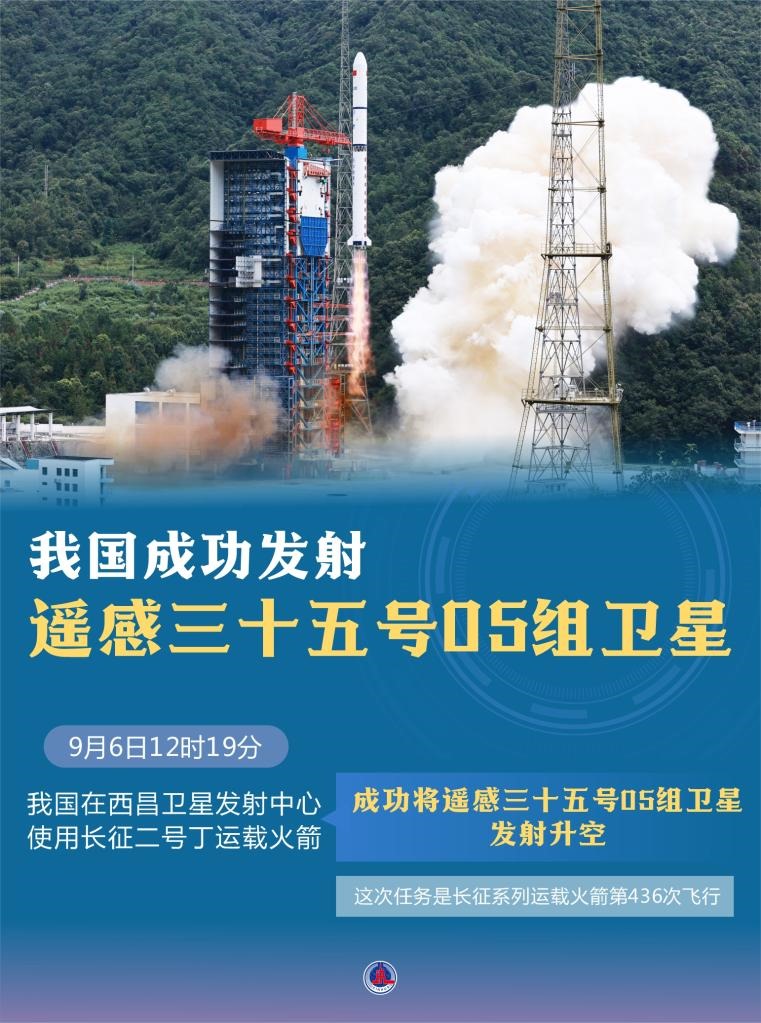 9月6日12時(shí)19分,我國(guó)在西昌衛(wèi)星發(fā)射中心使用長(zhǎng)征二號(hào)丁運(yùn)載火箭,成功將遙感三十五號(hào)05組衛(wèi)星發(fā)射升空。衛(wèi)星順利進(jìn)入預(yù)定軌道,發(fā)射任務(wù)獲得圓滿成功。新華社發(fā)(張夢(mèng)玉攝)
