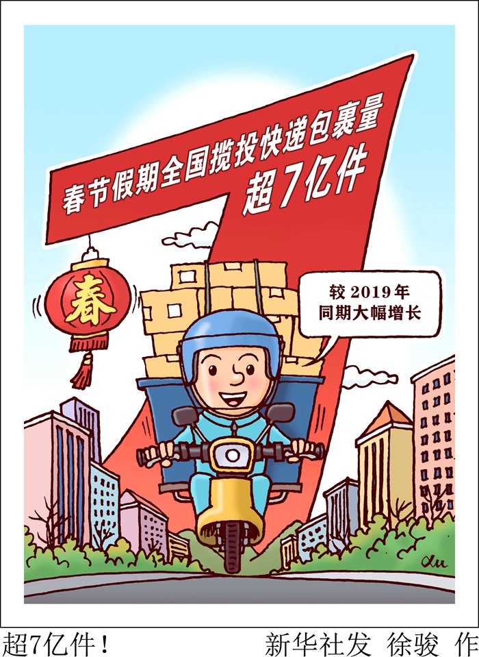 春節(jié)假期全國攬投快遞包裹量超7億件 較2019年同期大幅增長