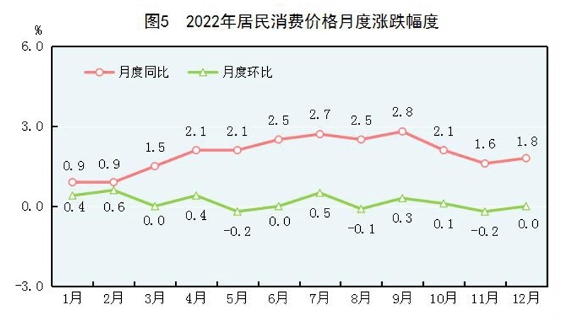 全年居民消費(fèi)價(jià)格比上年上漲2.0%。工業(yè)生產(chǎn)者出廠價(jià)格上漲4.1%。工業(yè)生產(chǎn)者購(gòu)進(jìn)價(jià)格上漲6.1%。農(nóng)產(chǎn)品生產(chǎn)者價(jià)格[9]上漲0.4%。12月份,70個(gè)大中城市中,新建商品住宅銷(xiāo)售價(jià)格同比上漲的城市個(gè)數(shù)為16個(gè),持平的為1個(gè),下降的為53個(gè);二手住宅銷(xiāo)售價(jià)格同比上漲的城市個(gè)數(shù)為6個(gè),下降的為64個(gè)。